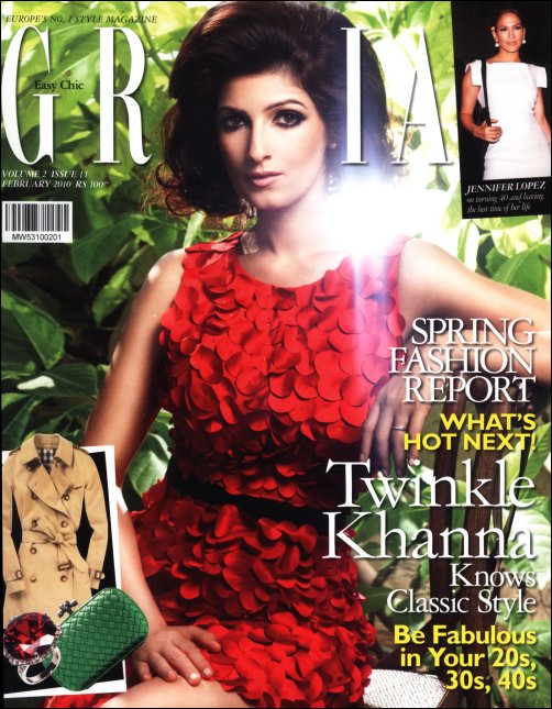 One of the most stylish star-wives in tinsel town is none other than Twinkle Khanna. Twinkle, who still looks like she could give the current breed of actresses a run for their money, features on the cover page of this month's issue of fashion and style magazine Grazia. Looking like a million bucks, Twinkle is seen wearing a red coloured textured dress by Blugirl.